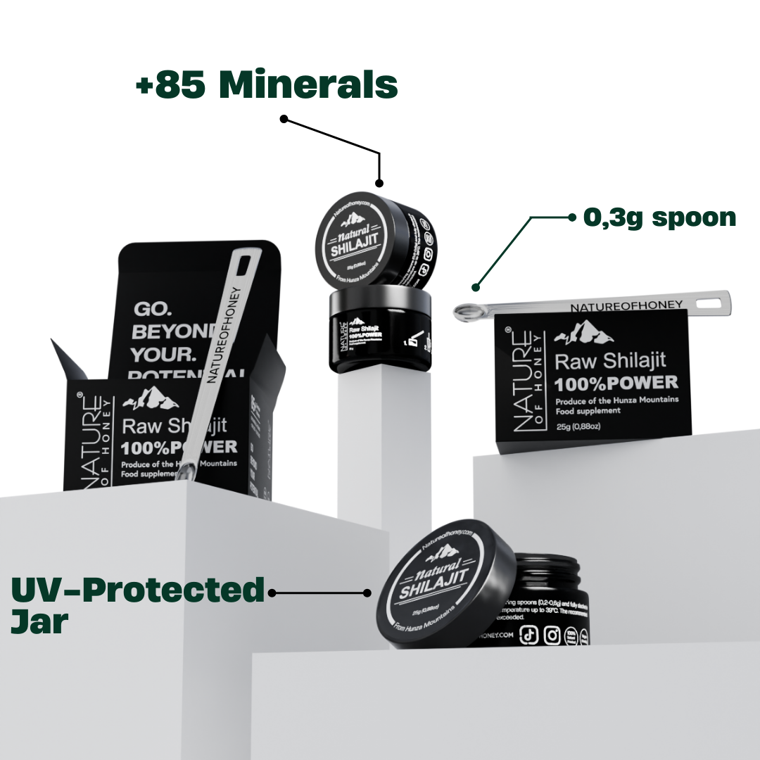 Shilajit is a rare herbomineral resinous substance found in the Himalayas, Hunza and Asian Mountains. It has an intense black color and a viscous texture. Shilajit has been formed by nature after a process that lasted thousands of years. It is described as powerful biostimulant and energy booster that can improve your physical and mental strength, enhance libido and brain function, promote recovery and much more!